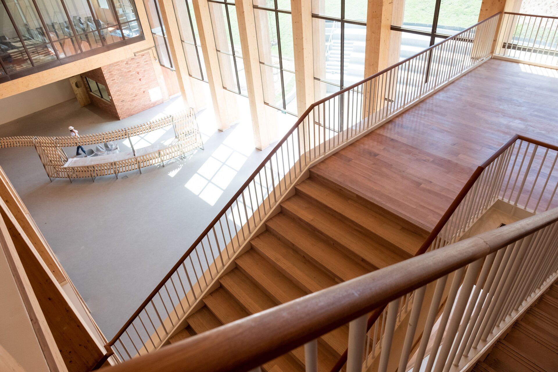 Về mặt cấu trúc, công trình chủ yếu bao gồm gỗ khối có tính bền vững, được tạo thành từ gỗ CLT và Glulam. Tuy nhiên, giống như nhiều dự án gỗ hiện đại đã được xây dựng, nó cũng có một số kết cấu cốt thép bê tông. Trong trường hợp này, bê tông được sử dụng cho lõi cầu thang, nhà vệ sinh và sàn tầng trệt.